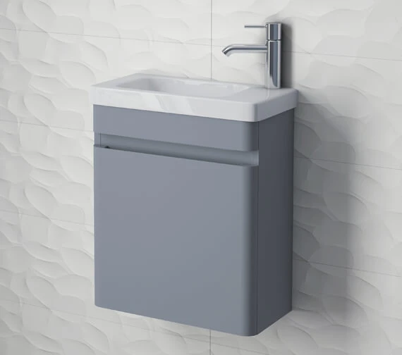 The RAK Resort Wall Hung 450mm Wide Cloakroom Vanity Unit with Basin is available for purchase in 5 fashionable finish options to choose from, all of which come manufactured from excellent and durable MDF and wood materials. Complete with a compatible 450mm inset white vitreous china-crafted basin and created for the secure wall-mounted installation. This product does not include the or the waste shown in the accompanying image. Designed with a single door that opens up smoothly for easy storage of an array of different items, this unit also offers 1 tap hole on the right-hand side of the basin.