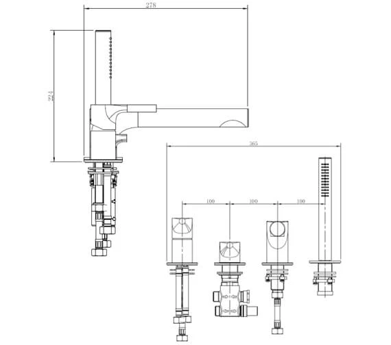 The RAK Sorrento 4 Hole Deck Mounted Bath Shower Mixer Tap is designed with a height of 221mm and a spout reach of 278mm for use. Manufactured from solid and durable brass material and available in several fashionable finish options to choose from, this unit is ideal for installation within any modern or contemporary bathroom layout. Requiring 1 bar of water pressure for proper functionality and 4 tap holes for proper placement; this product is designed for deck-mounted placement and will provide years of frequent usage with absolute ease.