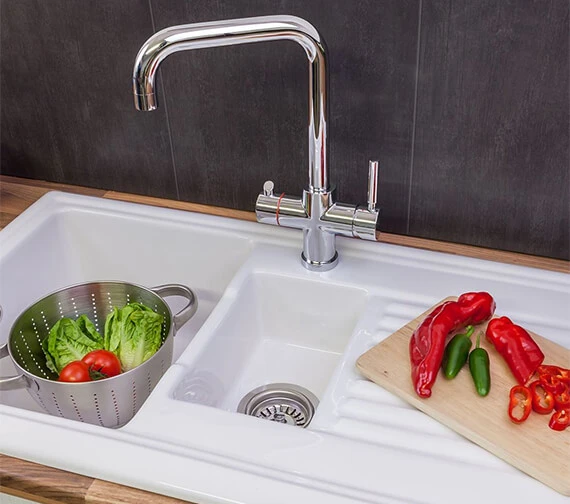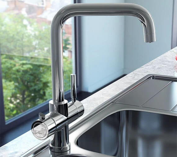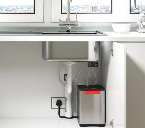 The Reginox Amanzi II 3-in-1 Instant Boiling Hot Water Kitchen Tap is designed for zero-fuss, everyday use. A non-pressurized system that delivers instant hot water between 75-98-degree, it includes a carbon filter, digital boiler, and tap. The tap has a 360-degree rotating spout and also has a child-safe spring lock boiling dispenser that pours filtered water at the touch of a button.