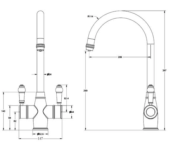 The Reginox Amanzi Vechi II 3-In-1 Instant Boiling Hot Water Kitchen Mixer Tap is a traditionally designed unit that makes a lovely addition to any traditional or modern, kitchen layout. Designed with a 2.4-litre boiler tank as part of its overall form, this product provides enough 75 to 98-degree Celsius water to create 10 cups of tea or coffee. Requiring between 0.5 bar and 7 bar of water pressure for proper functionality, this model also provides an easy to move spout that can rotate 360-degree is desired. A safe and chic unit that also includes an anti-scald child safety lock to assure any user can operate it with no risk of burns or scalding of any kind.