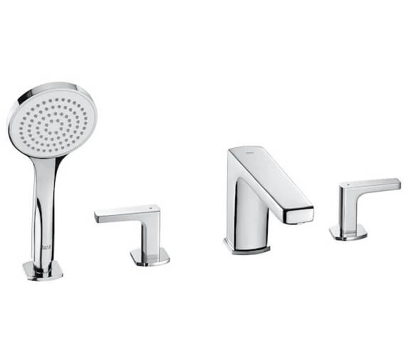 Roca Escuadra Bath Shower Mixer With Short Spout Diverter And Hand Shower Chrome