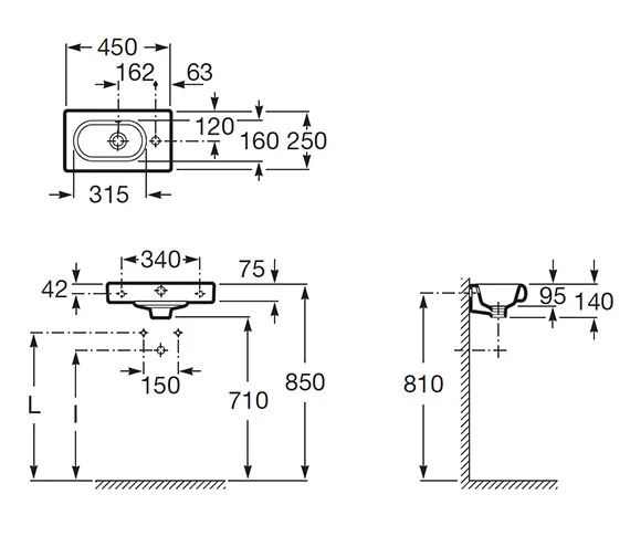 The Roca Meridian-N Compact Wall Hung White Basin with 1 Right-Hand Tap hole is the stuff of fantasies. The extra wide tap platform with scooped interior gives it a superb look. This wall-hung basin is made of excellent chinaware and comes with a striking white finish that is smooth to touch and easy to clean. It comes with one tap-hole on the right-hand side. Also, available optionally are a 320 mm gleaming chrome-finish towel rail, Pedestal, , Waste, and Bottle Trap. The basin is supported by a 25-year guarantee from the manufacturer.