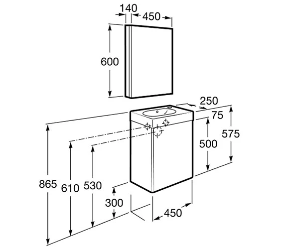 - Vanity Unit Size : Width 450 x Depth 250 x Height 575mm.