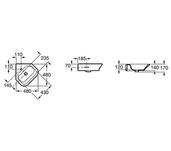 Roca The Gap White Corner Basin 480mm Wide – 32747R000