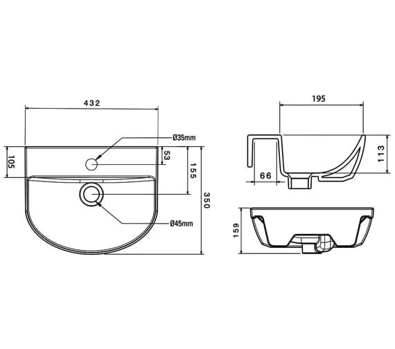 Roper Rhodes Zest White Slimline Semi Countertop Basin 435mm – Z2SCBAS