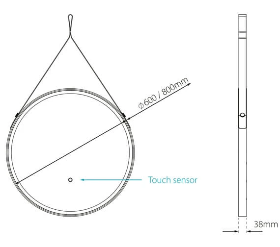 The Sensio Nova Wall Hanging LED Illuminated Bathroom Mirror comes in two size options of 600mm or 800mm. An elegant addition to your bathroom for adding a designer touch to the decor, this mirror is manufactured from high quality mirror glass. Suitable for wall installation using the inclusive leather effect hanging strap, this unit comes with a brilliant black finish. For added safety, the mirror glass is backed by the film. The built-in demister pad prevents mist formation on the mirror during your bathing and freshening up moments. The matt black finish gives it a decorative look enhanced by the illumination.
