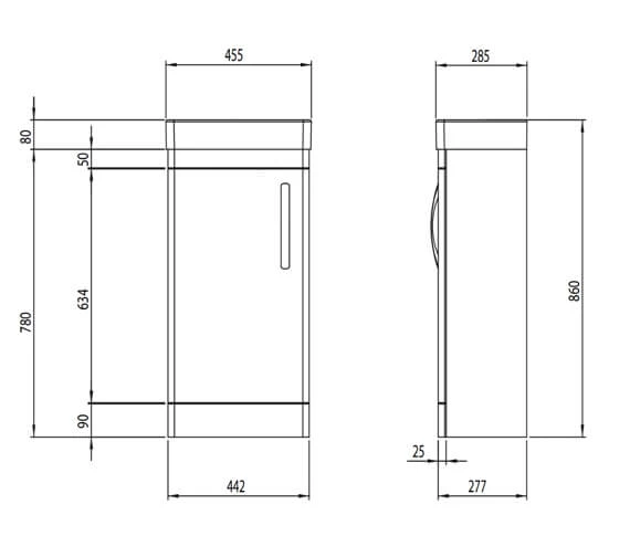 Tavistock Compass 455mm Cloakroom Unit and Basin is a practical addition to a compact bathroom space. Crafted from high-quality MDF, the furniture has a useful basin with a single tap hole. The cabinet measures 455 mm in width by 860 mm in height. The basin is made of fine-quality ceramic and is completed in a white finish. The cabinet beneath has chrome handles and soft-close doors and comes in three versatile finishes, and is backed by a 10-year guarantee covering all manufacturing defects.