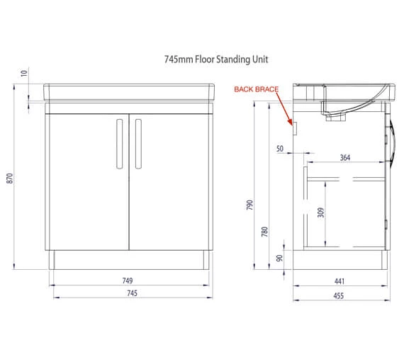 - ✔A plumbing void of 50mm is available at the back of the furniture