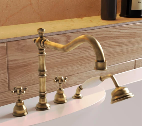 Tre Mercati Allora 4 Tap Hole Bath Shower Mixer Tap With Kit delivers in style and practicality. It matches in versatility with its beautiful finishes, making it adaptable to all environments from domestic to commercial. Crafted from superior quality materials this mixer is robust and hard-wearing to withstand daily use. It is supplied with shower kit and features traditional design with twin crosshead handles and is suitable for operation in high pressure systems.