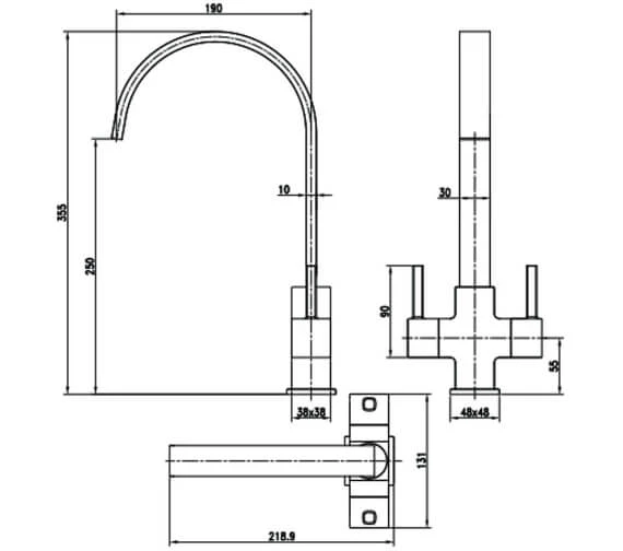 - Centre of the inlet to centre of outlet: 190mm.