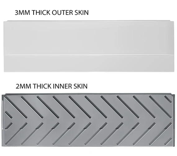 Turn your bath into a brand new-looking fixture with the help of the Twyford Endurance Front Bath Panel. This product is a durable accessory that is made out of twin skin polystyrene, with the outer skin measuring three millimetres thick and the inner skin measuring two millimetres thick for a double layer of durability. It can be used with a bath as large as 1700 millimetres in length, but it can be trimmed if necessary. It measures 510 millimetres in height regardless and has been given a stylish white finish to fit in with any decor.