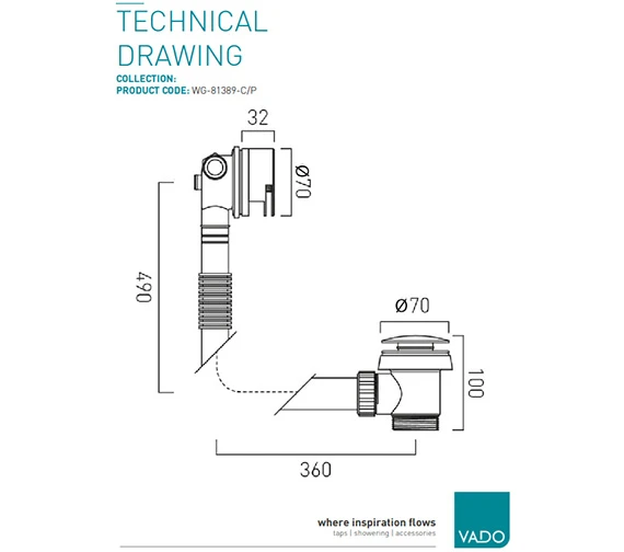 The Vado Edit Bath Filler Waste and Overflow with Clic-Clac Operation is operated via a push-style bath filler waste combined with a solid, attached overflow great for completing a high-quality bathtub system. A design complete with 2 x 1-2 inch inlets and a 1.1-2 inch x 10mm threaded outlet connection, this impressively built unit is offered in solid, chrome-plated pieces that perfectly fit for quicker and simpler installation. It is recommended for use with plumbing systems that can produce a minimum water pressure of 1 bar.