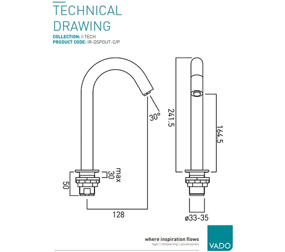 Vado, which beliefs in superior quality and designing and innovativeness, has come up with I-Tech Infra-Red Deck Mounted Spout, an epitome of technology. Just put your hands under the spout, and the water starts flowing out. The chrome-finished sensor spout works both on mains and batteries. Spectacular curves crafted from brass make this aesthetically pleasing and strong, and durable.