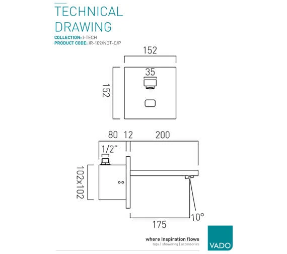 Vado has crafted Infra-Red Basin Mixer Tap under their I-Tech Notion range using the latest available technology. This wall-mounted tap with a square back-plate can be operated by mains or batteries. The simplistically designed mixer tap with a projection of 212mm, finished in exclusive chrome, lends class to your . It requires 1.0 bar water pressure for regular working and suitably works under a high water pressure system. The manufacturer provides a 5-year guarantee for this masterpiece against manufacturing defects. Compatible H2 Eco flow regulators can be purchased separately.