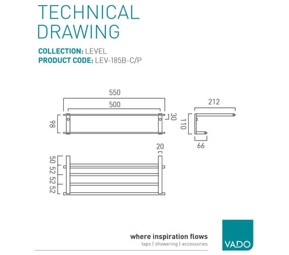 Vado Level Chrome Towel Shelf With Rail