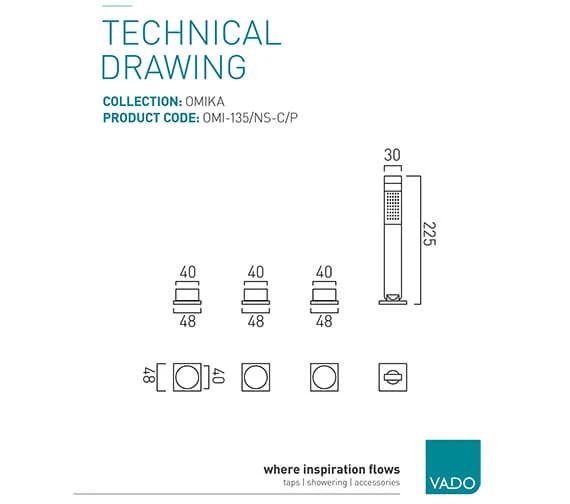 Vado Omika Chrome 4 Hole Bath Shower Mixer Set Without Spout