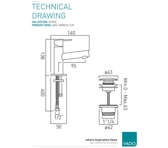 Vado Sense Chrome Mini Mono Basin Mixer Tap With Universal Waste