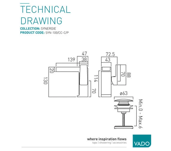 Vado Synergie Chrome Progressive Mono Basin Mixer Tap With Universal Waste