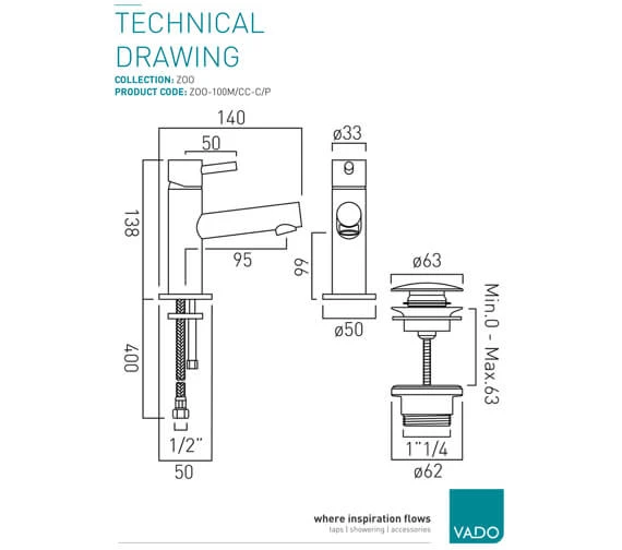 - Fitted with ceramic cartridge ZOO-100M/CAR.