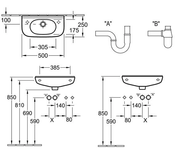 Villeroy & Boch Villeroy And Boch O.Novo 500mm White Alpin Compact Basin With Overflow