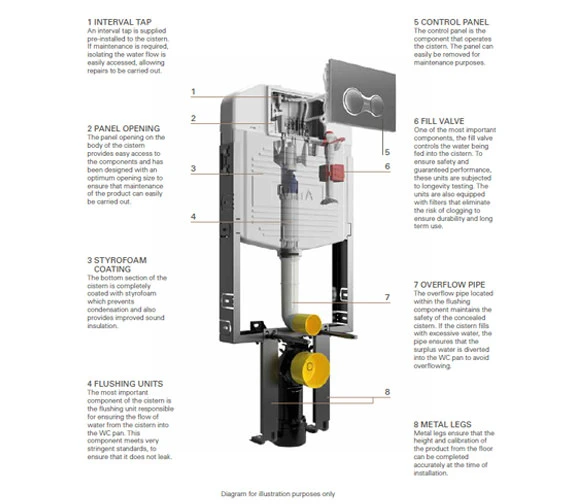 - To be used with new generation super-efficient wall-hung WC pan.
