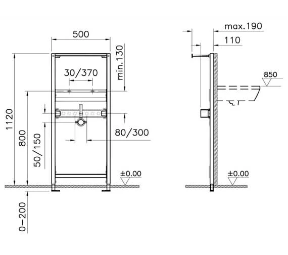 VitrA 500 x 1120mm Washbasin Frame is a diverse range of bathroom accessories brought to you by Vitra. Suitable for floor and wall fixations, the frame is used for installations of and weights 9.45 kg. It has a width of 500mm and height of 1120mm and is backed by 5 years of guarantee from the manufacturer. You can purchase this frame at an economical price from our online store.