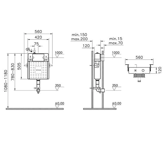 Suitable for any bathroom due to its crisp white colour, the VitrA Concealed Cistern For Back To Wall Toilet features a versatile finish that can fit into any bathroom decor and make it look cleaner. This cistern comes in 2 variations and has a width of 560mm and a depth of 120mm. It is made from durable materials that have been backed up by a five-year manufacturers guarantee. Suitable for concealed installation, it has a width of 560mm and a depth of 120mm. The 2.5-4 litre cistern is compatible with mechanical flush plates that can be ordered separately. Suitable to use with .