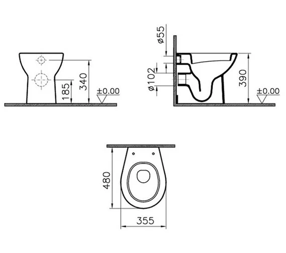 VitrA Layton White 480mm Back-To-Wall WC Pan