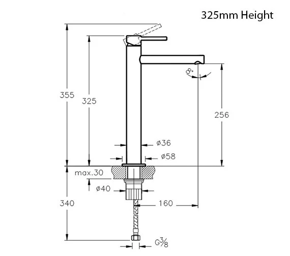 - Centre of the inlet to the centre of the outlet for 325mm Height: 160mm.