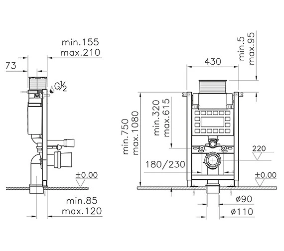 VitrA Reduced Height WC Frame With Concealed Cistern is a great accessory used for the pre-wall installation of the WC. This wall hung unit is reliably built from sturdy raw materials and has a width of 430mm. This frame offers flush control, can choose between a front, top, or dual flush plate. The volume of water varies between full 6 litres or half flush 3 litres. Working pressure required for smooth flow is 0.2-16 bar, and the frame comes with 5 years of guarantee against any manufacturing defects. Suitable to use with .