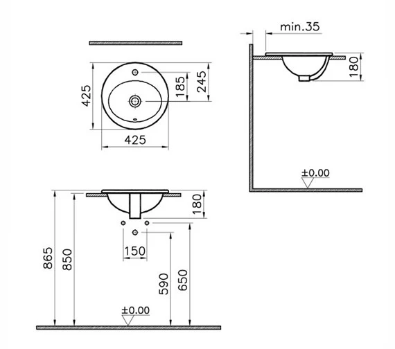 - Oval-shaped basin.